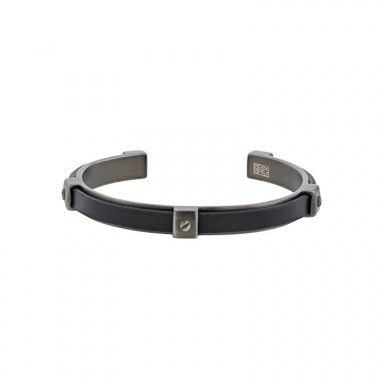 Bangle in weathered steel and black cowhide leather BRAND : ONE MAN SHOW |